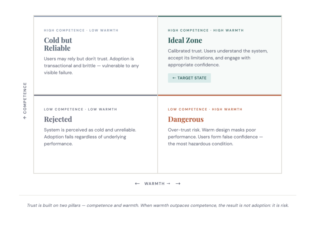 This is why trustworthy AI must be designed to signal both competence and warmth through its behaviour and communication — not through branding alone.